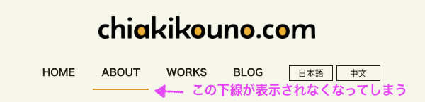 When switching from the default language (Japanese) to another language, the underline indicating the “current page” in the header menu disappeared.